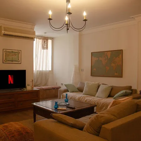 Staying at Cozy Ground Floor 2 Bedroom Apartment In Maadi, guests have access to a sitting area and a kitchen equipped with climate control. The apartment includes a walk-in shower and a separate toilet for your comfort. Towels are also included in the bathroom.